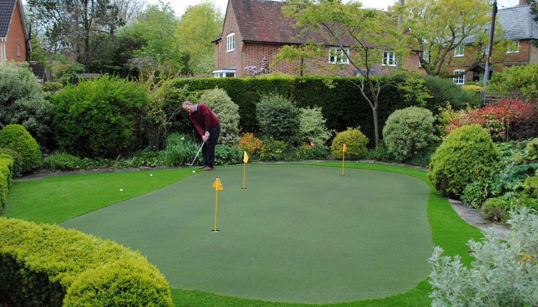 If you’re at home you can practise putting on a putting green that will mimic the type of golf green that you will find on the golf course.