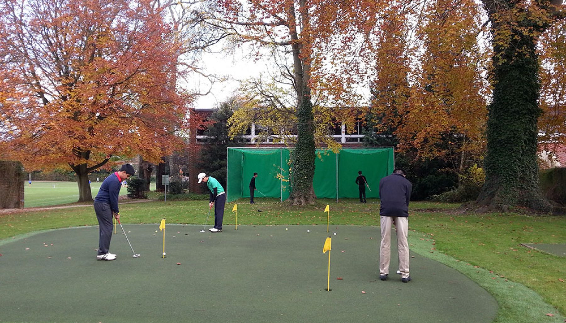 Winchester College pupils practise putting on their new Huxley all-weather green and hit drivers and irons in the Huxley triple bay practice nets.